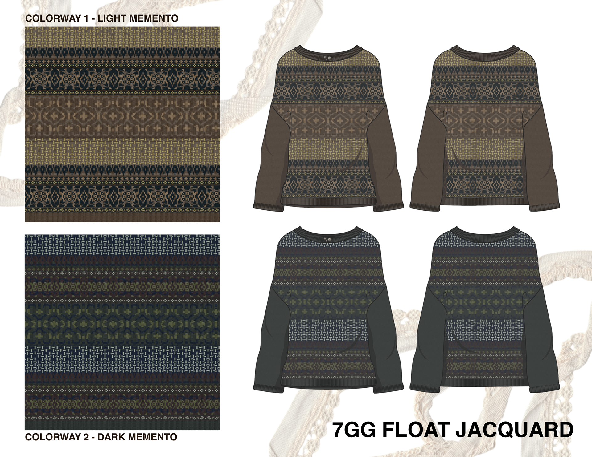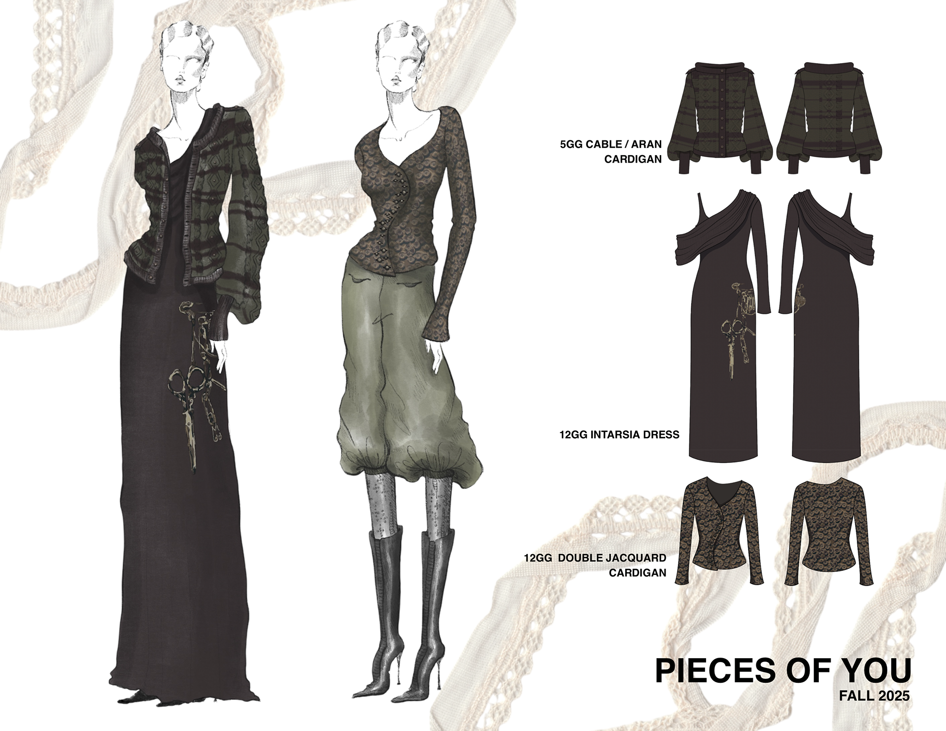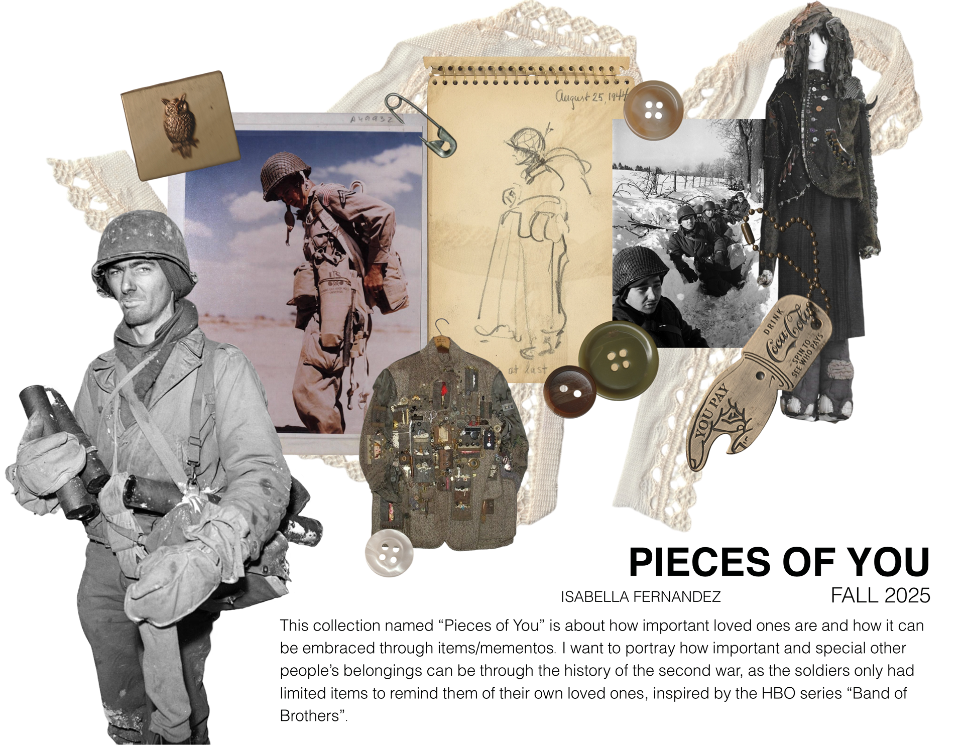 Side project consisting of flats with knits and prints based on the collection "Pieces of You", which expresses how important loved ones are through the art of their personal belongings, inspired by the HBO series "Band of Brothers"